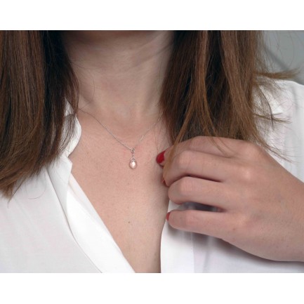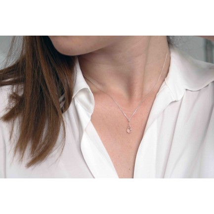 It's made exclusively of sterling silver 925. The chain is 40cm long. The semi-precious pink quartz stone has a drop cut and it's diamentions is 0,8x0,6 cm.